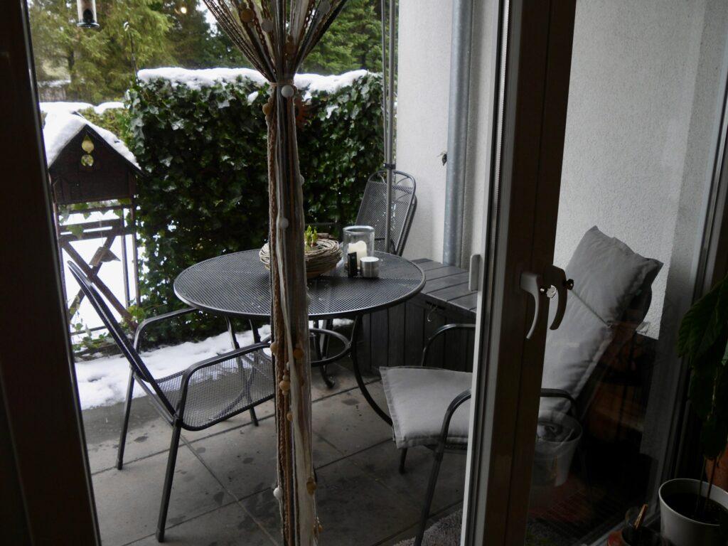 – Überdachte Terrasse mit kleinem abgetrennten Gartenanteil